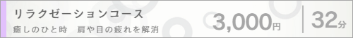 | リラクゼーションコース | 3,000円 | 約32分 |